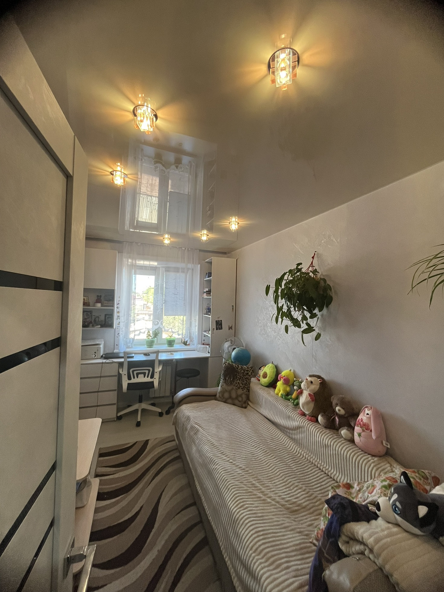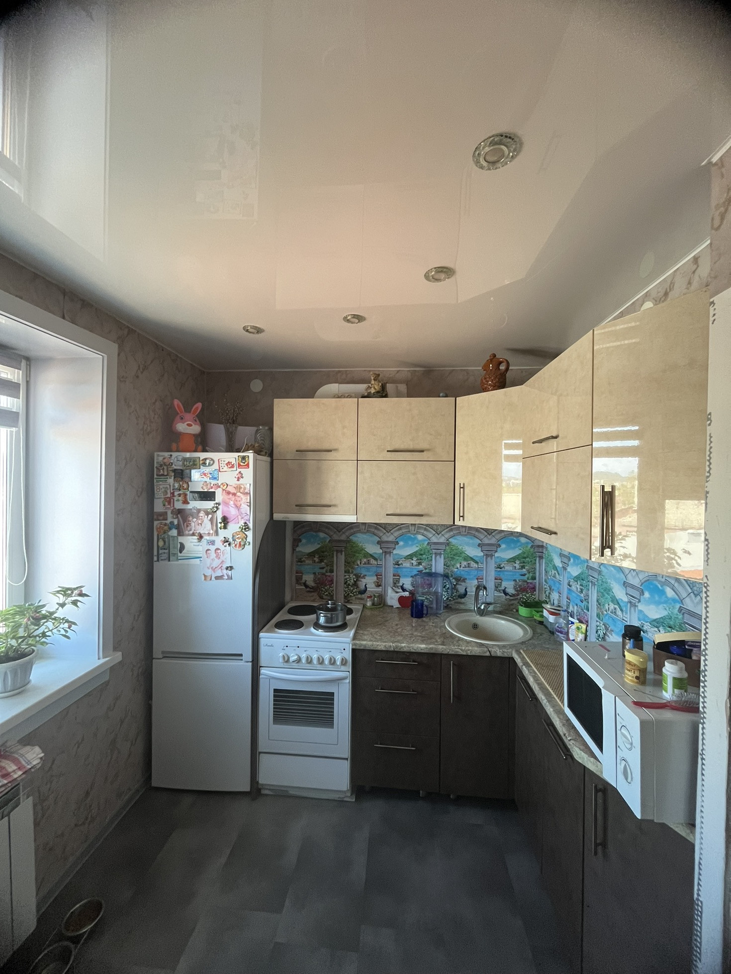 В квартире сделан качественный ремонт ,натяжные потолки ,обои и замена напольного покрытия производилась в том году. Новым собственникам остается кухонных гарнитур ,печка,прихожая ,и мебель у окна в спальне .