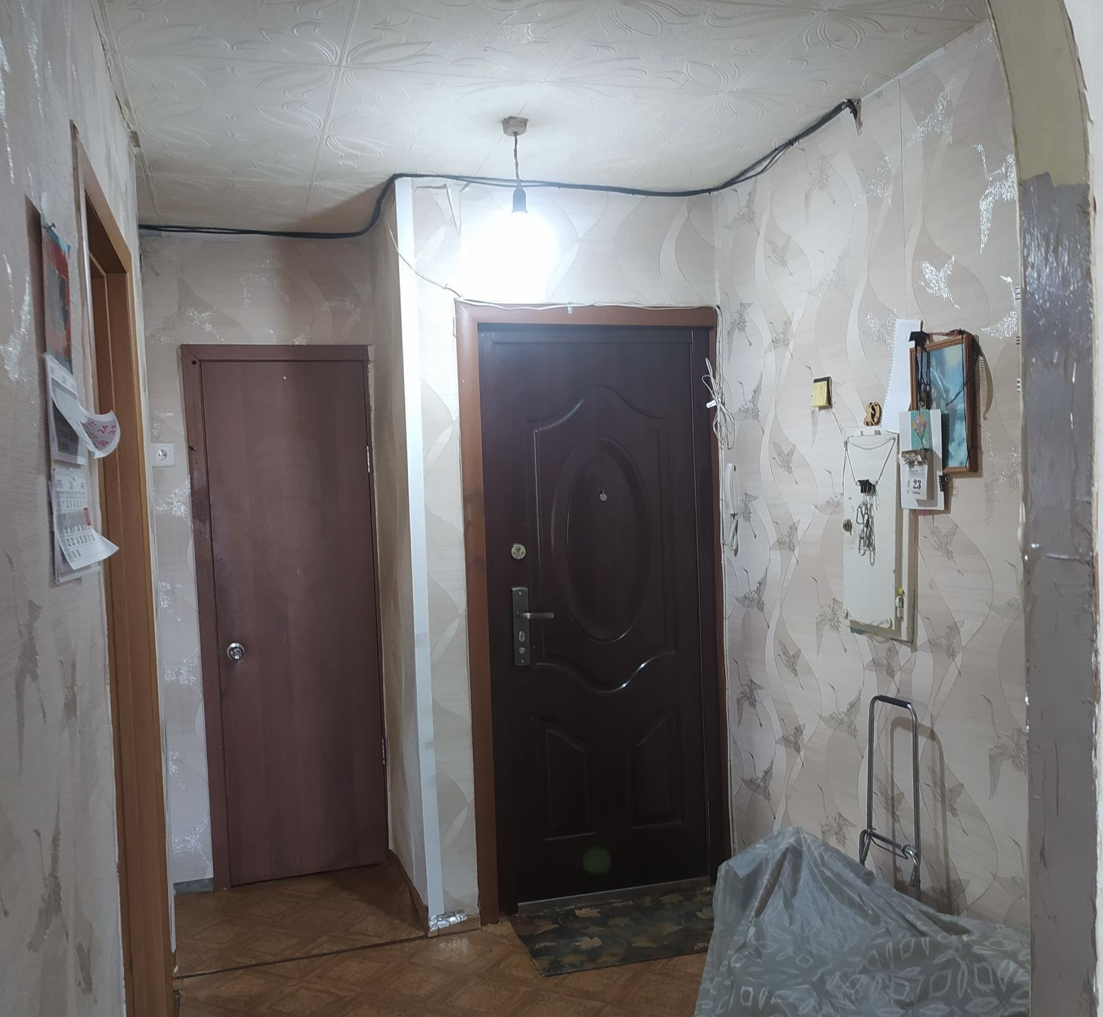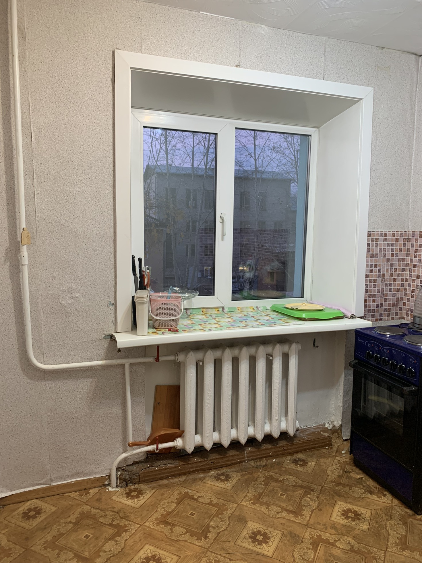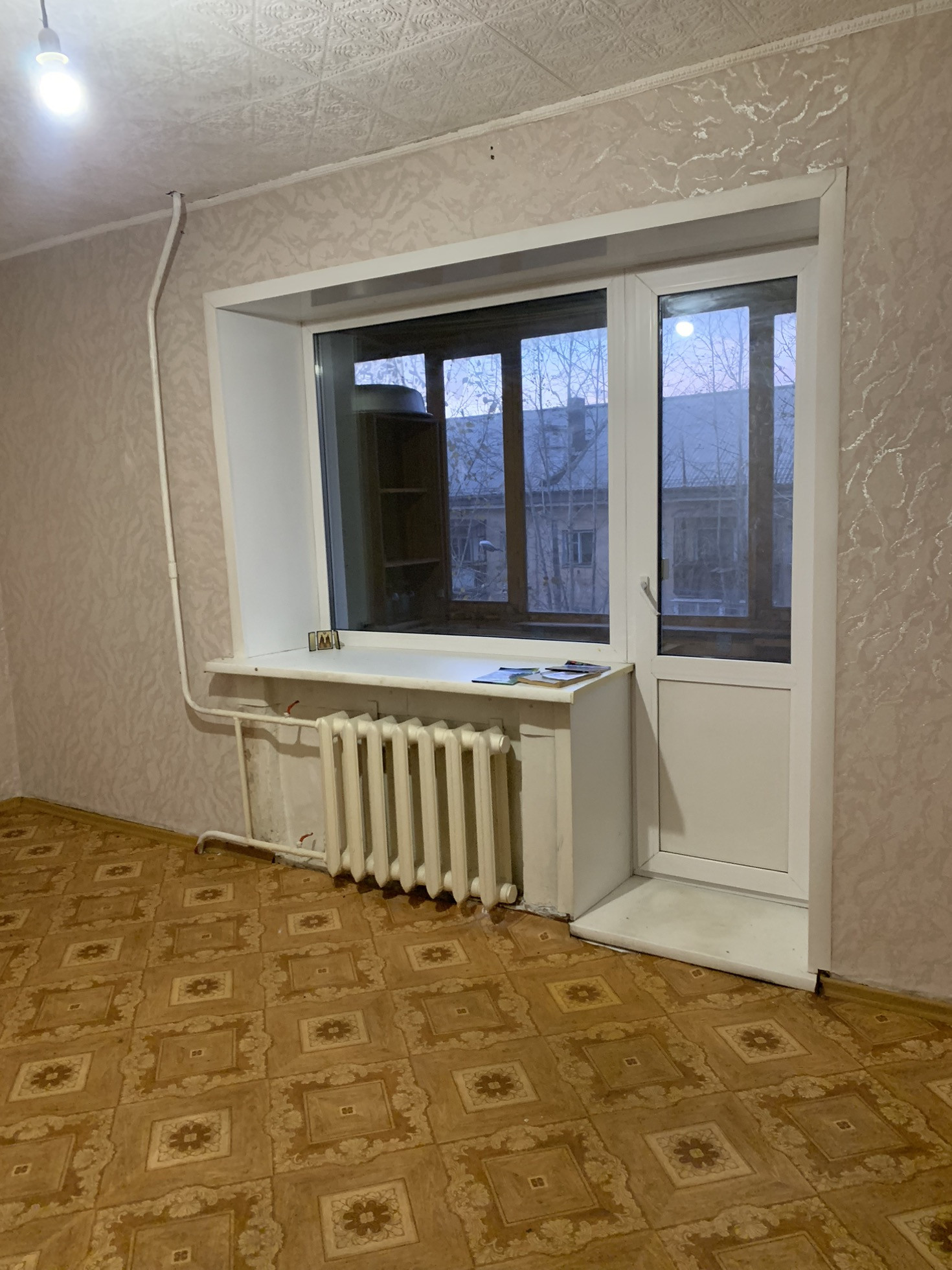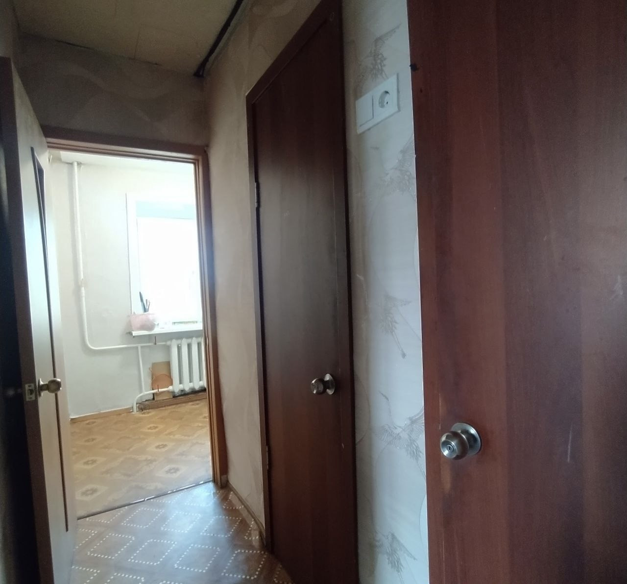 В квартире все окна заменены на пластиковые, новая водная дверь, межкомнатные двери заменены на новые, пол линолеум, потолок плитка, все комнаты раздельные , большой квадратный коридор, застекленный балкон!