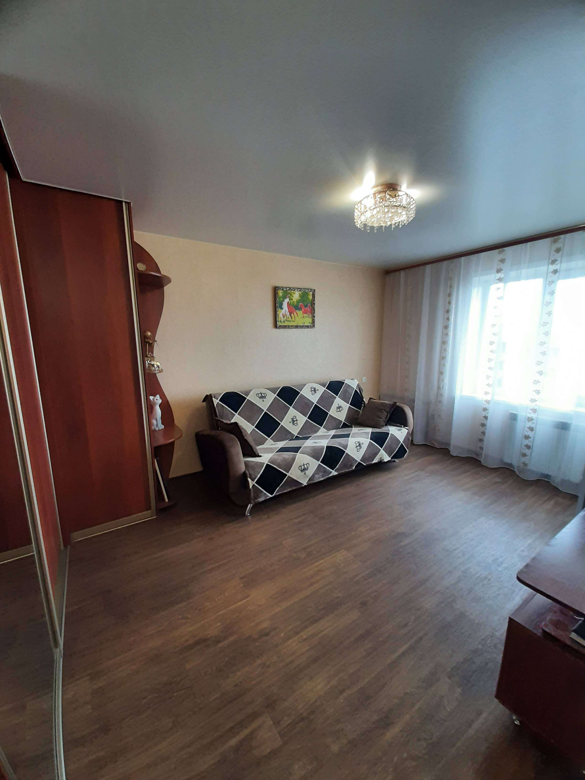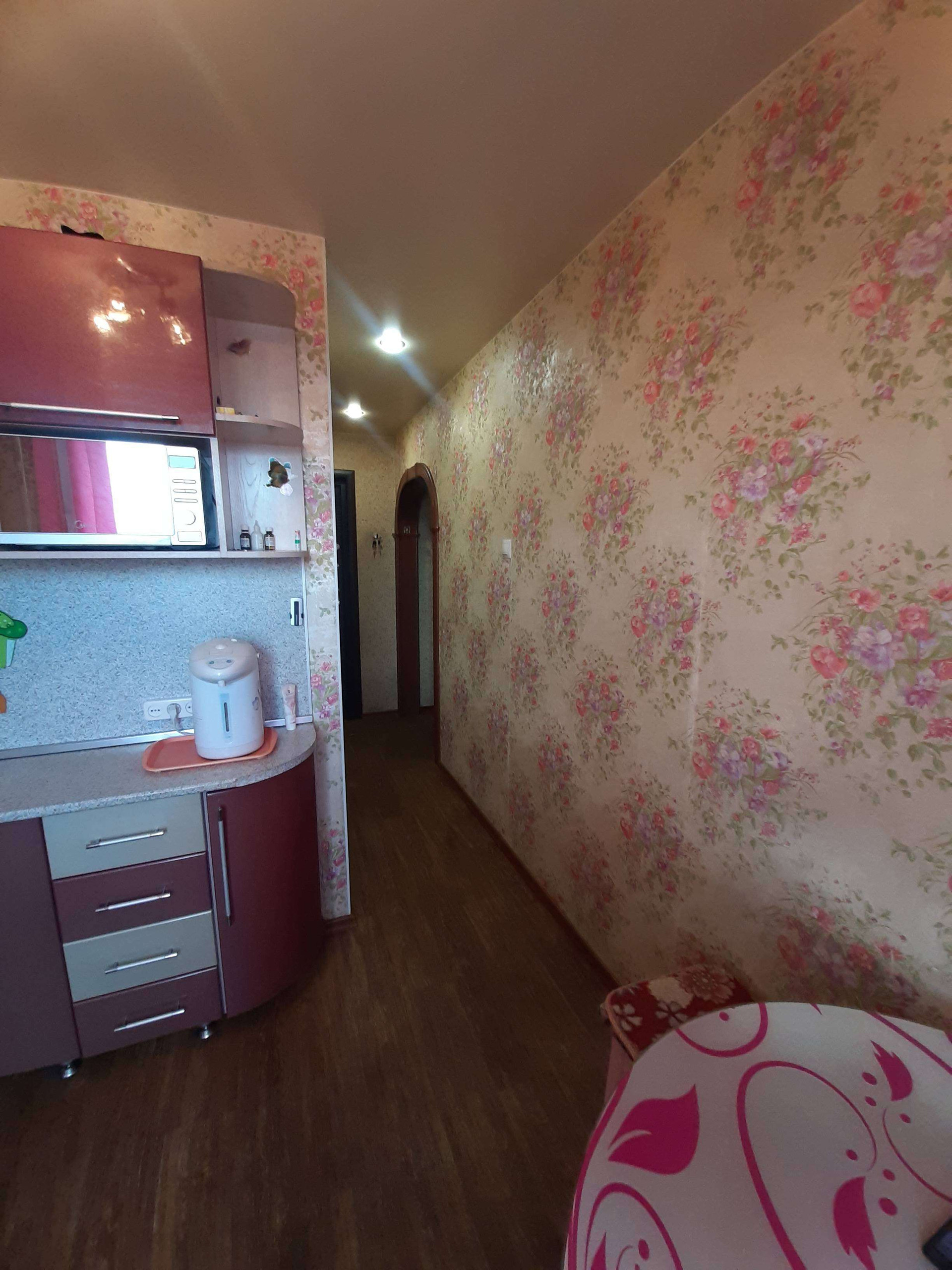 Состояние отличное, комнаты раздельные, замена абсолютно всего: окон, дверей, сантехники, радиаторов отопления! Натяжной потолок, на полу качественный линолеум, санузел современный кафель, установлены приборы учёта воды, балкон АЛ профиль с внутренней и внешней отделкой. Кухня 7,2 метра!