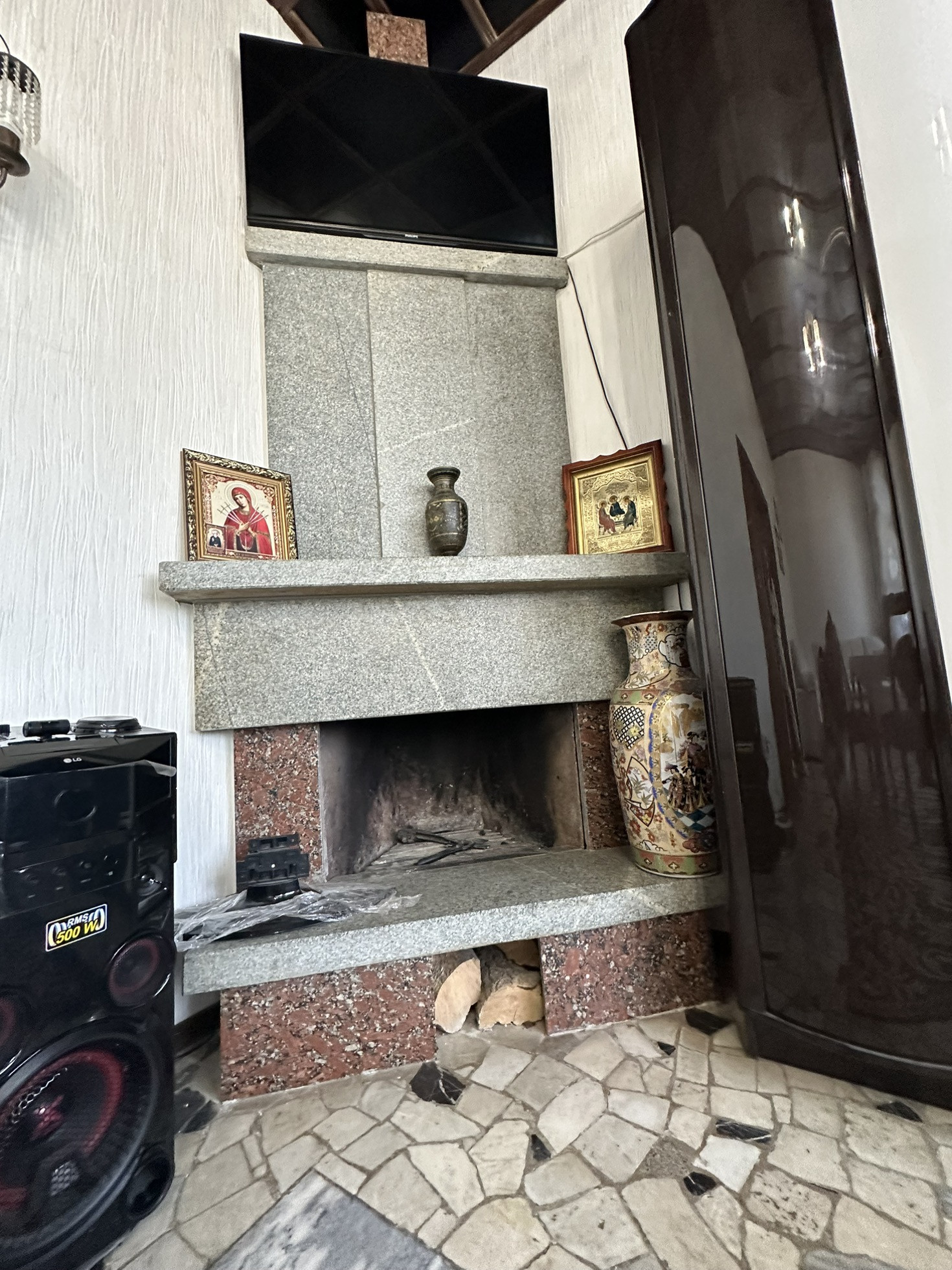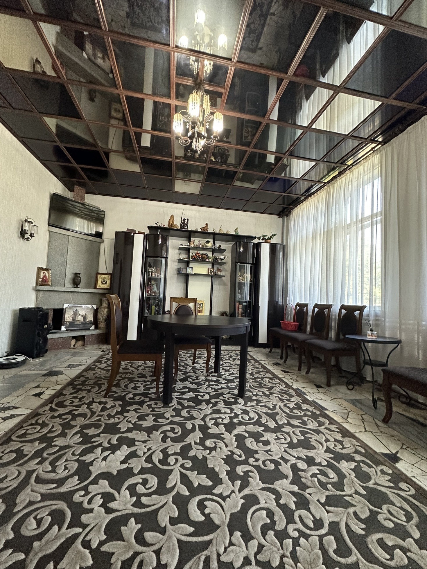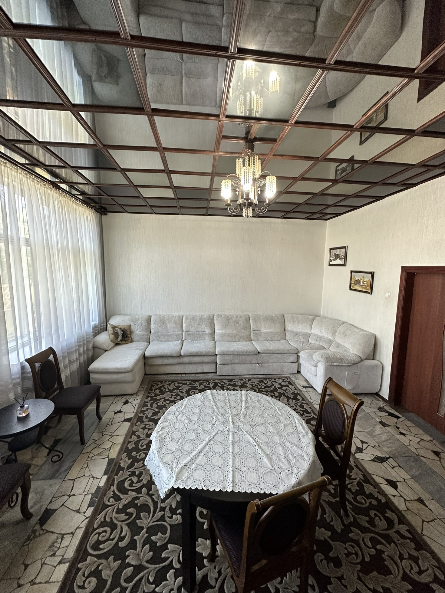 Большая гостинная комната с камином для уютных домашних посиделок. Так же в доме есть сауна.