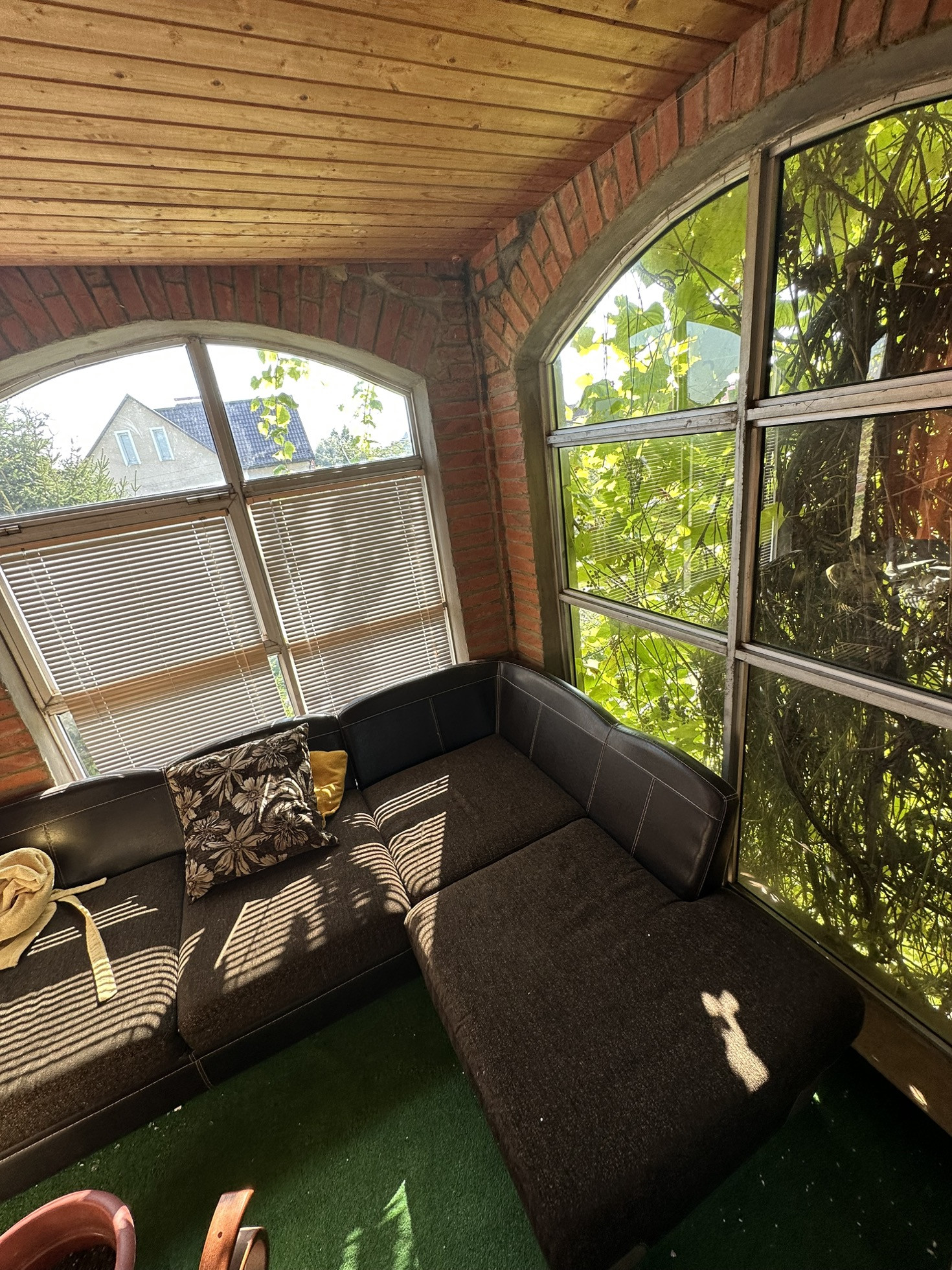 Участок 1200 кв.м засеян газоном , на участке расположена беседка с небольшим прудиком. Так же на участке расположены две большие теплицы для выращивания сезонных овощей. Данный земельный участок имеет статус ИЖС. На территории расположен двух этажный гараж-мастерская, который тоже утеплен и отапливается газом.