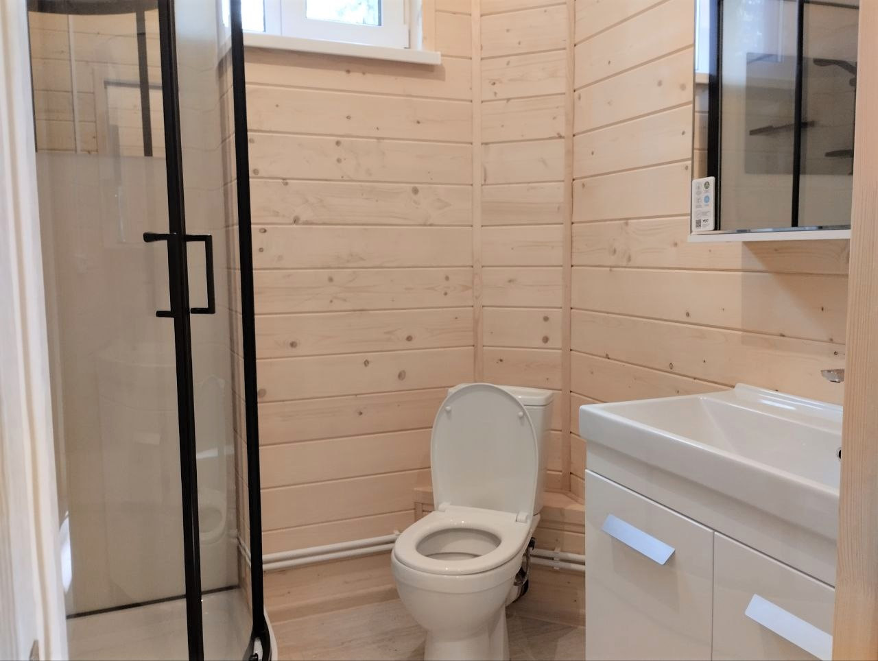 — Уложен керамогранит в санузлах, установлена сантехника на 1-м этаже;