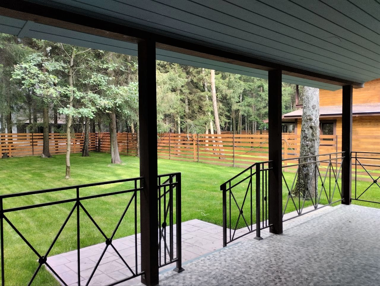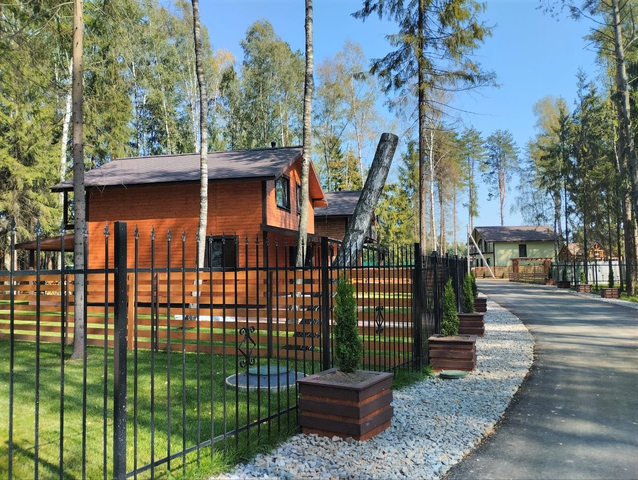 — Забор по периметру участка, установлены распашные ворота;