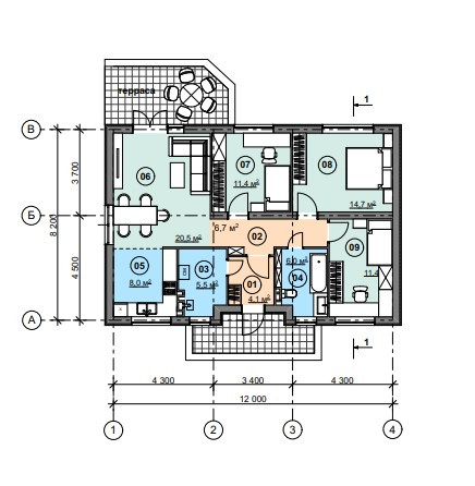 Общая площадь 90 м2