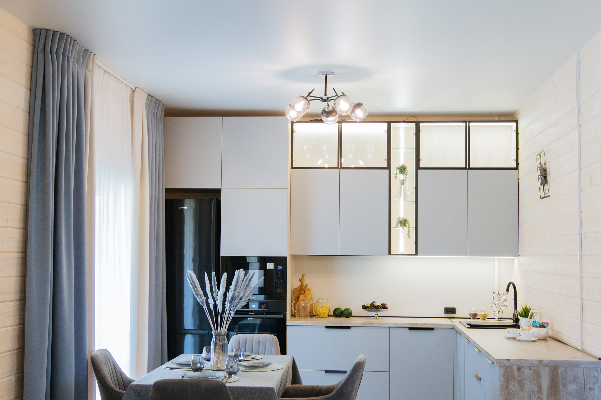— Смонтированы натяжные потолки;