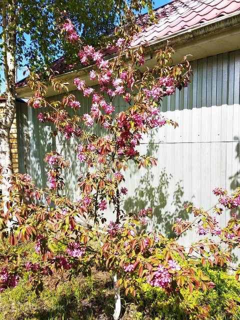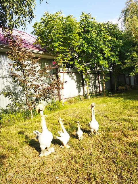 Во дворе два парковочных места, декоративные растения. В саду четырнадцать плодовых деревьев, ягодные кустарники, виноград, теплица 18 м.