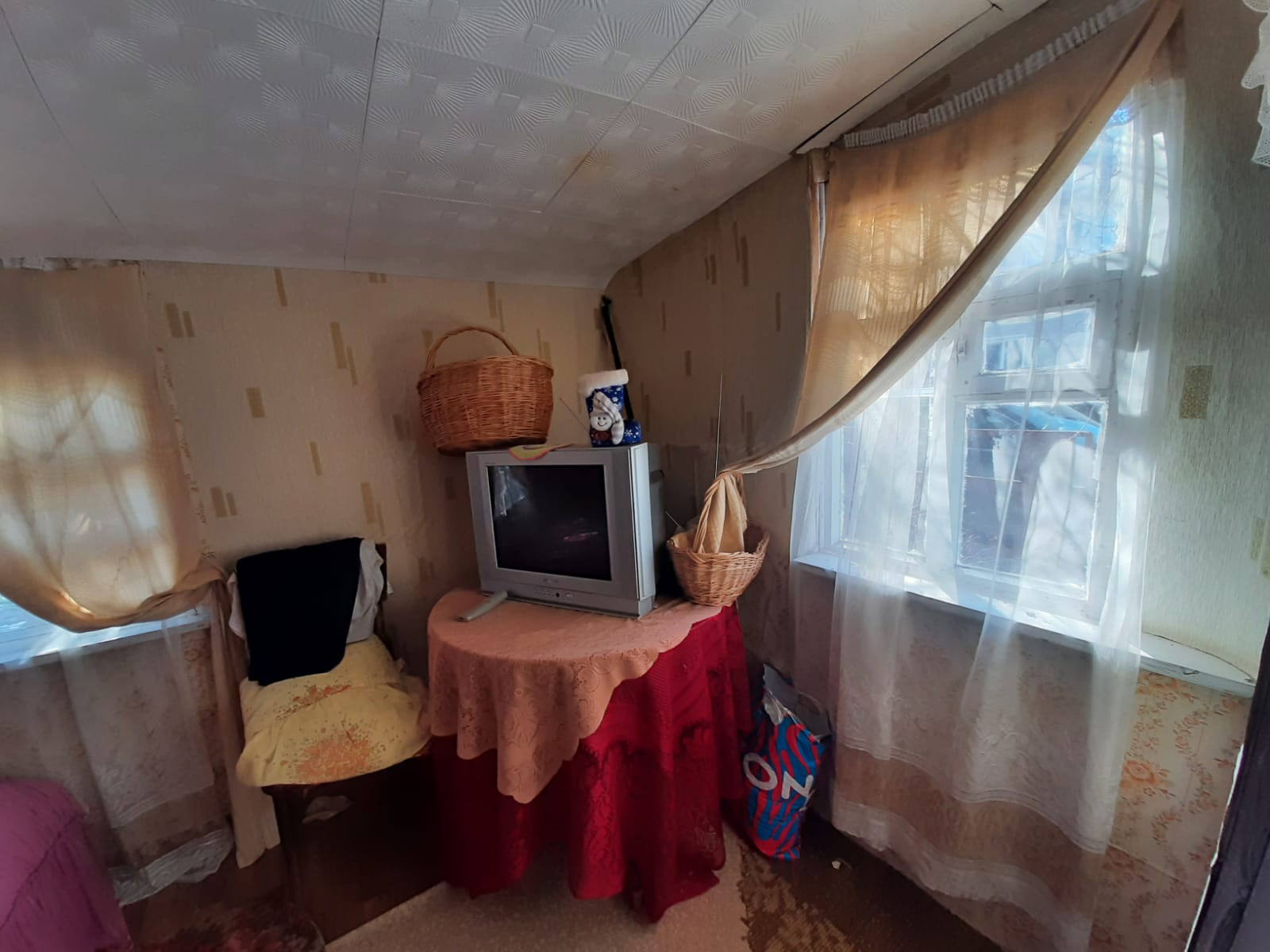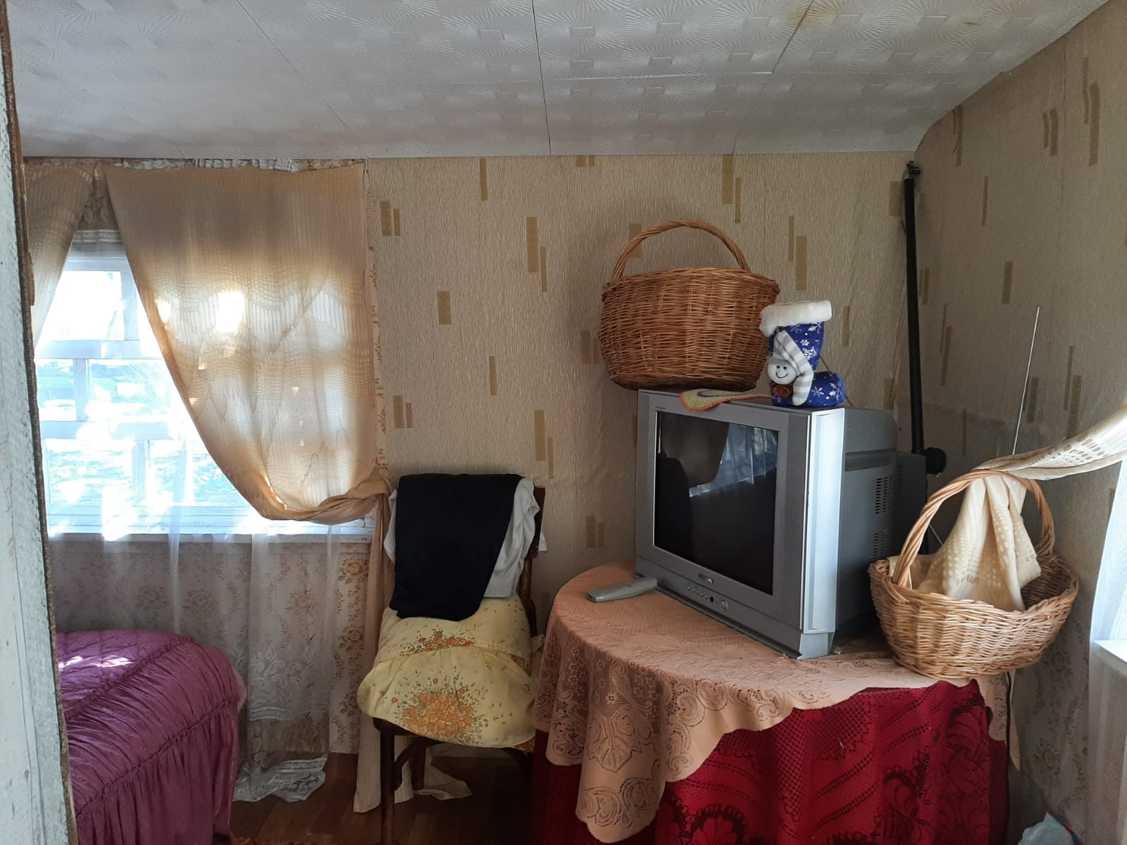 В доме 3 комнаты: кухня, гостиная, спальня, терраса. Мебель остается