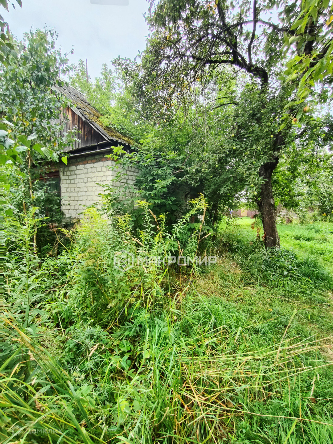 Участок ровный, имеется кирпичный домик, требующий ремонта.