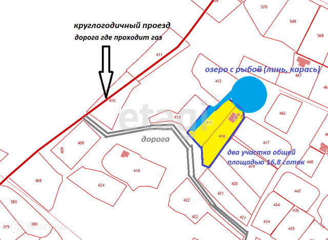 Продается два смежных участка по 8 соток. Общая площадь 16,8 соток. Цена указана за каждый участок. Небольшой домик 2 комнаты из дерева, обшит листами металла, пристройка для хранения инвентаря. Забор металлическая сетка, затянутая хмелем. Примерно 12 соток ровной земли пригодной для строительства или посадки огорода. В конце участков высокие березы, березовый сок хороший. Также вдоль участков слева проходит небольшой ручей, который впадает в небольшое озеро за огородами, где ловится линь, карась. Выход к озерцу прям в конце участка. Рядом с участком проходит широкая улица, круглогодичный подъезд и жилые дома, на этой улице есть газ и свет. Имеется колодец (3 кольца). Хорошие соседи. Тихие спокойное место, в черте города, въезд возле стеллы Брянск. До остановки примерно 500 м от участка.