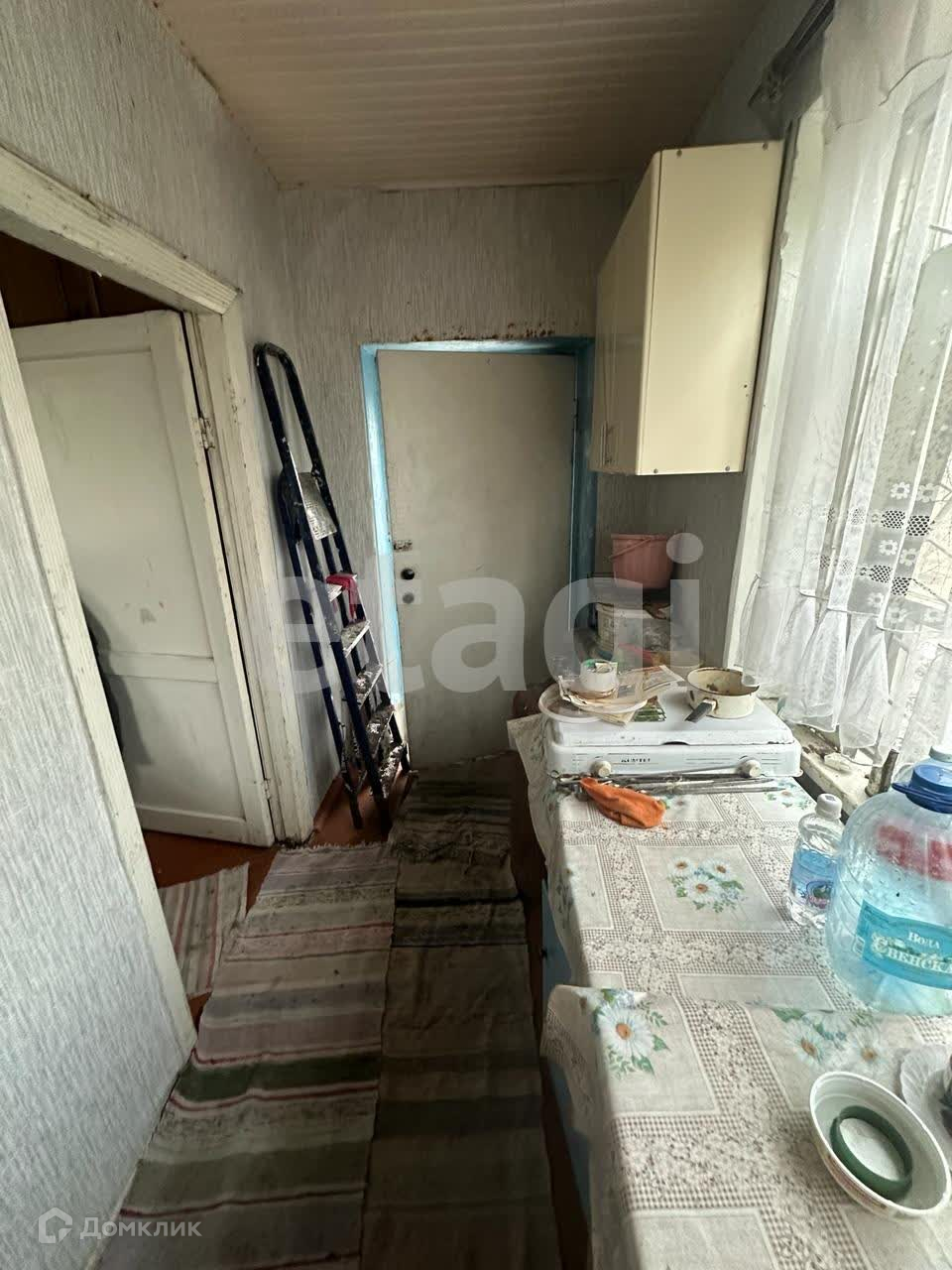 Домик двухэтажный, на втором этаже можно сделать спальню, на первом небольшая кухня с газовой плитой, и печкой, и комната.