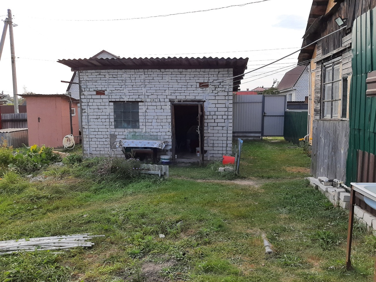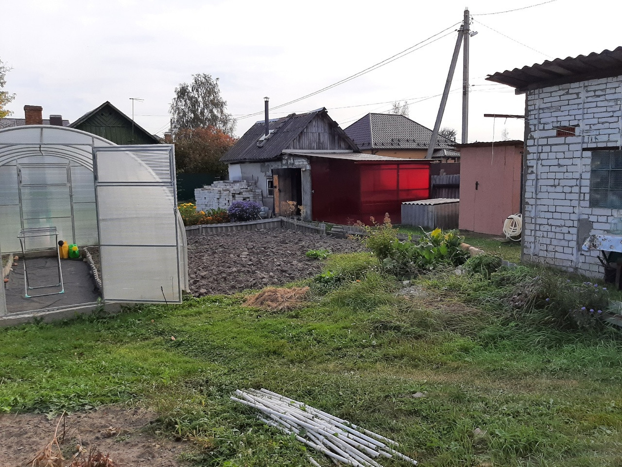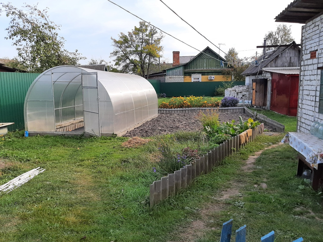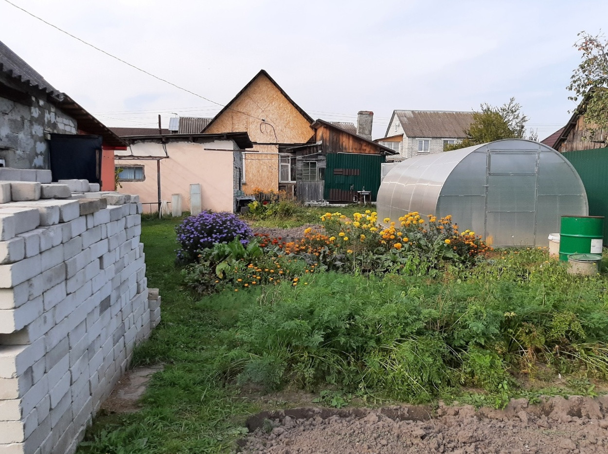 Участок 5,4 сотки, ровный, разработанный, правильной формы. Имеет постройки такие, как баня, поленница, туалет, теплица и кирпичный гараж. Всё чисто, аккуратно и «к месту»! Забор из металлопрофиля по всему периметру участка.