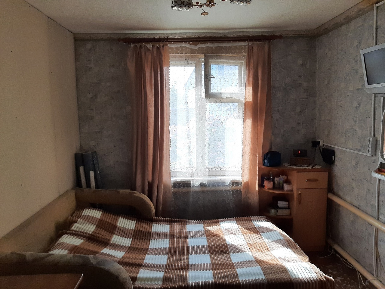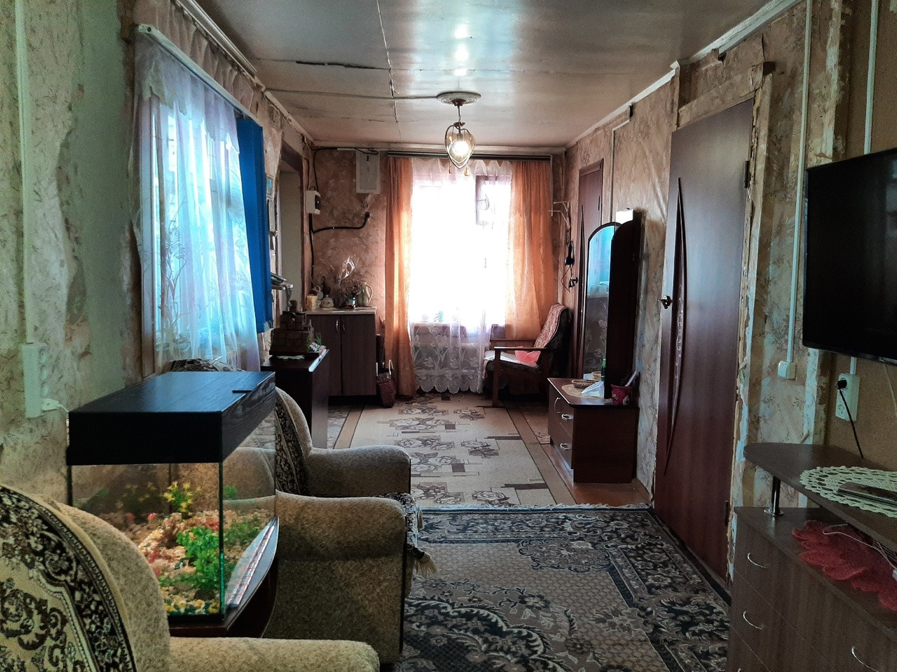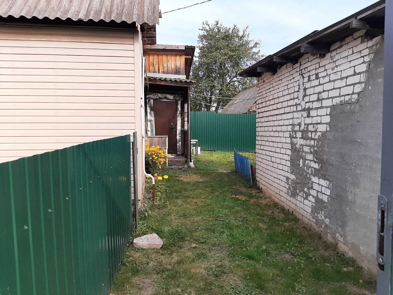 Дом уютный, в жилом состоянии, блокированной постройки от 1980 года, обшит сайдингом.