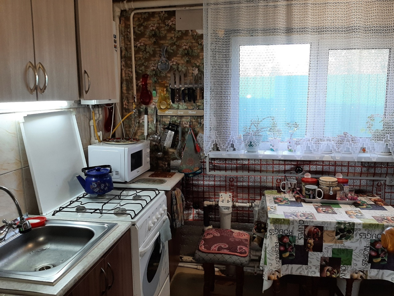В доме 3 спальных комнаты, просторная гостиная 18,2 кв.м., кухня 8,1 кв.м. и веранда. Все коммуникации подведены: отопление котловое (газовое), водная система полностью обновлена, установлена современная колонка-автомат, фильтры под питьевую воду, сделан грамотный вывод системы под пристройку санузла. Имеются счётчики на свет, газ и воду.