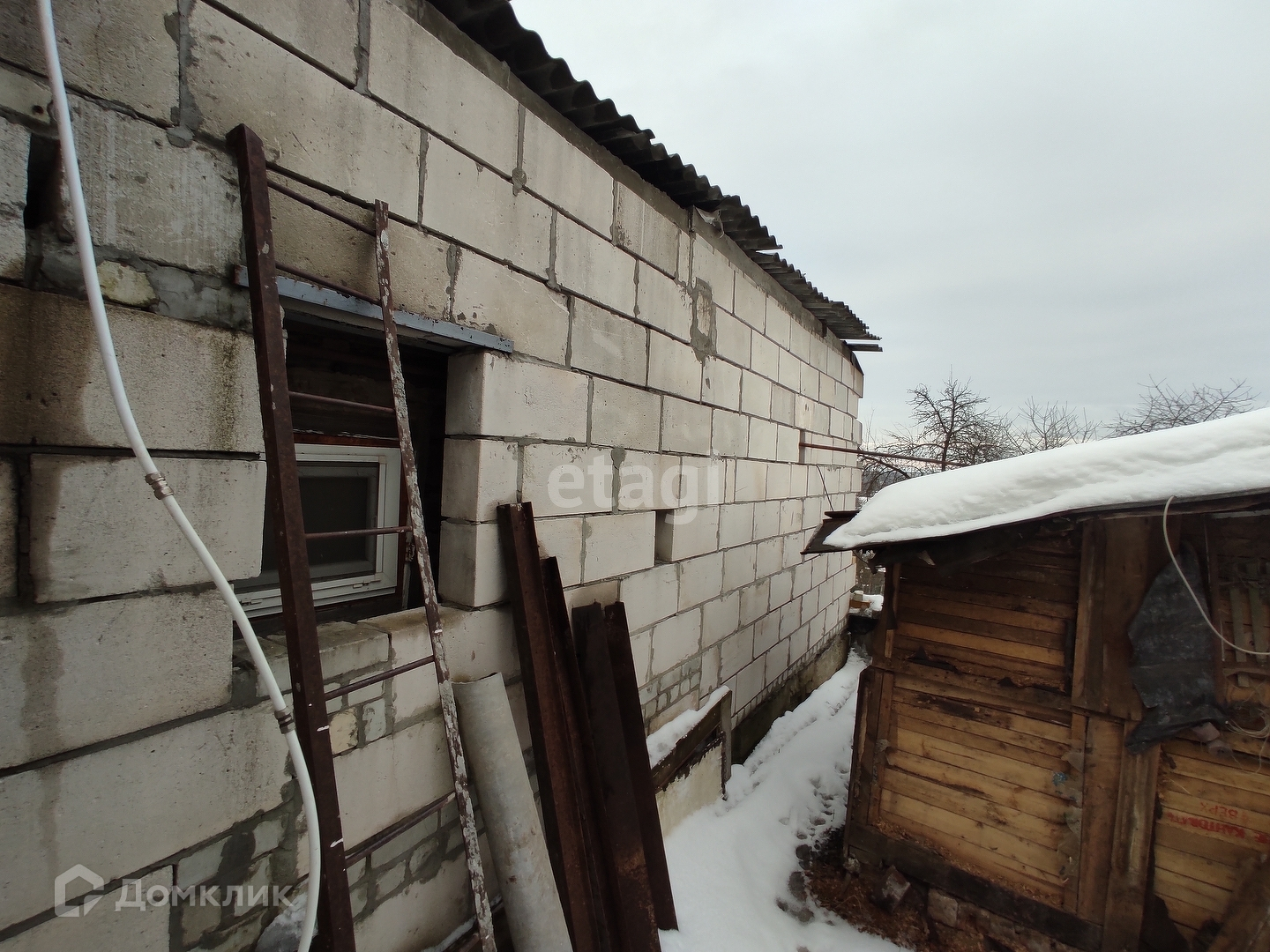 На участке ИЖС расположен жилой дом старой постройки площадью 40 кв. м. Вокруг него строится дом из пеноблока площадью 120 кв. м. по первому этажу. Второй этаж не возведен, стройматериалы имеются и остаются новому собственнику (пеноблок, облицовочный кирпич и т.д.). Фундамент очень надежный, ленточный, армированный, прошел проверку временем уже как пару лет стоит надежно и прочно.