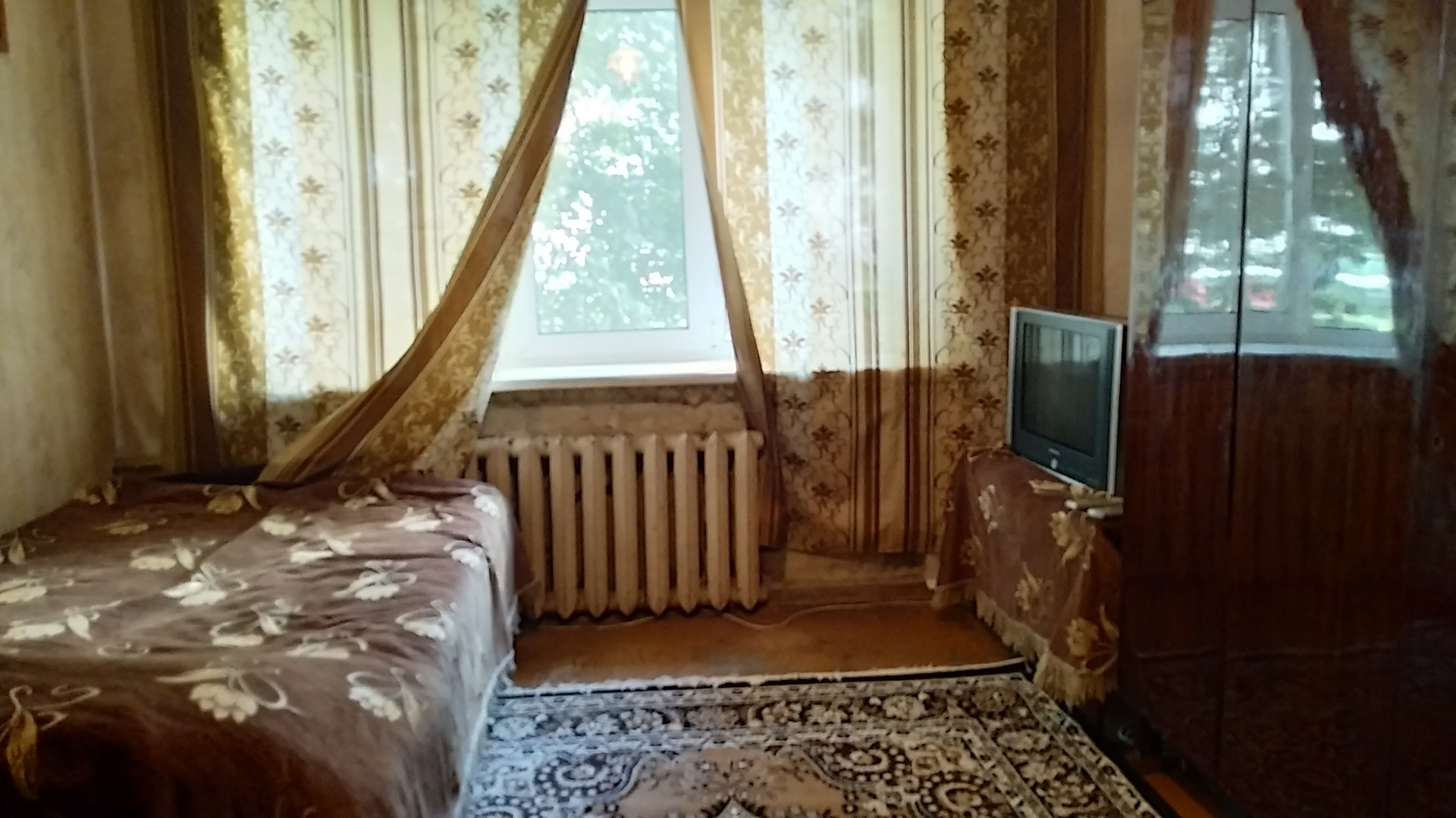 v Комната расположена на 1 этаже 5-этажного кирпичного дома.