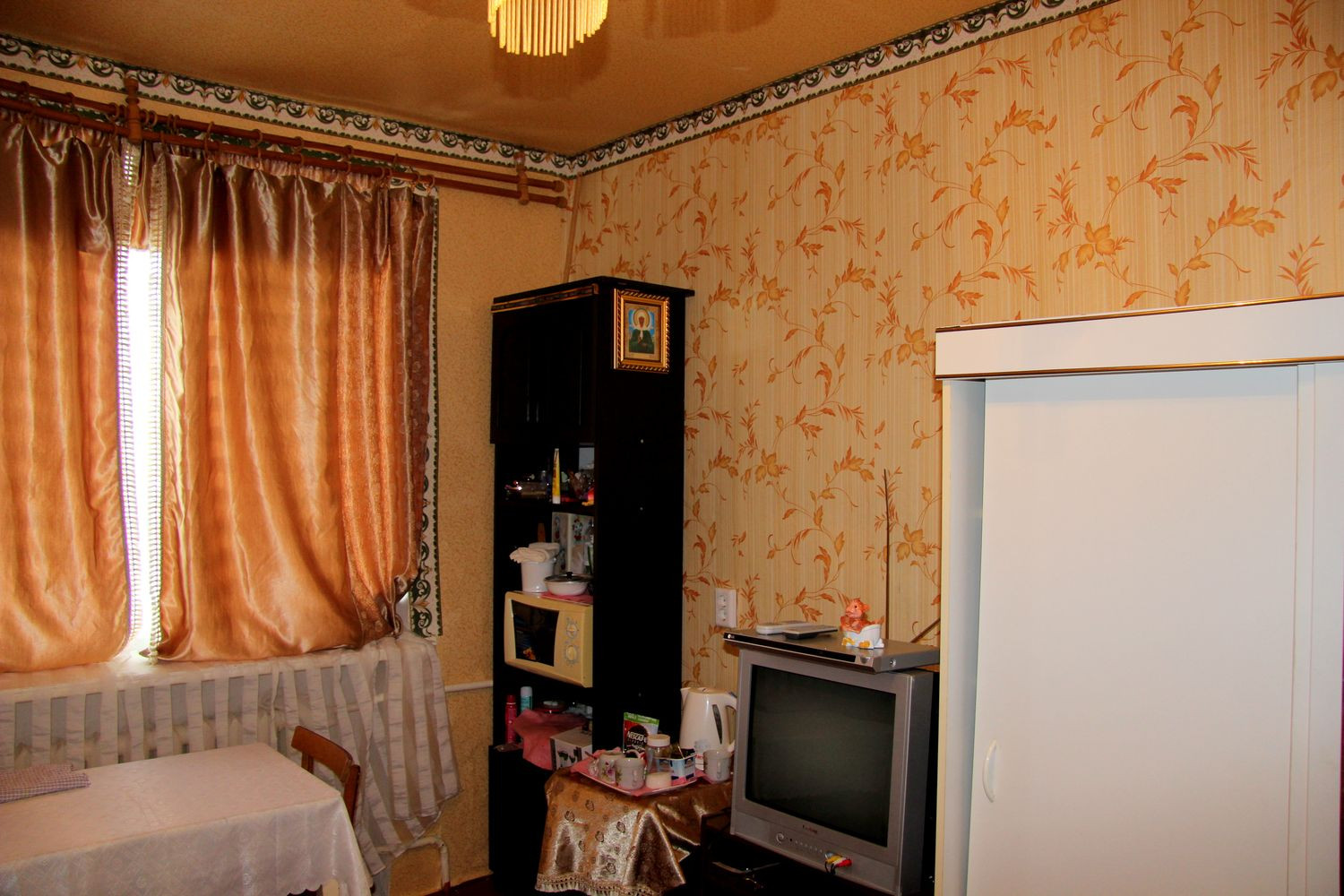 Чистая, ухоженная комната в общежитии секционного типа. Кухня на 8 комнат, душевая-туалет на 2, постирочная на 4 комнаты. Есть вся мебель для проживания или сдачи внаем.