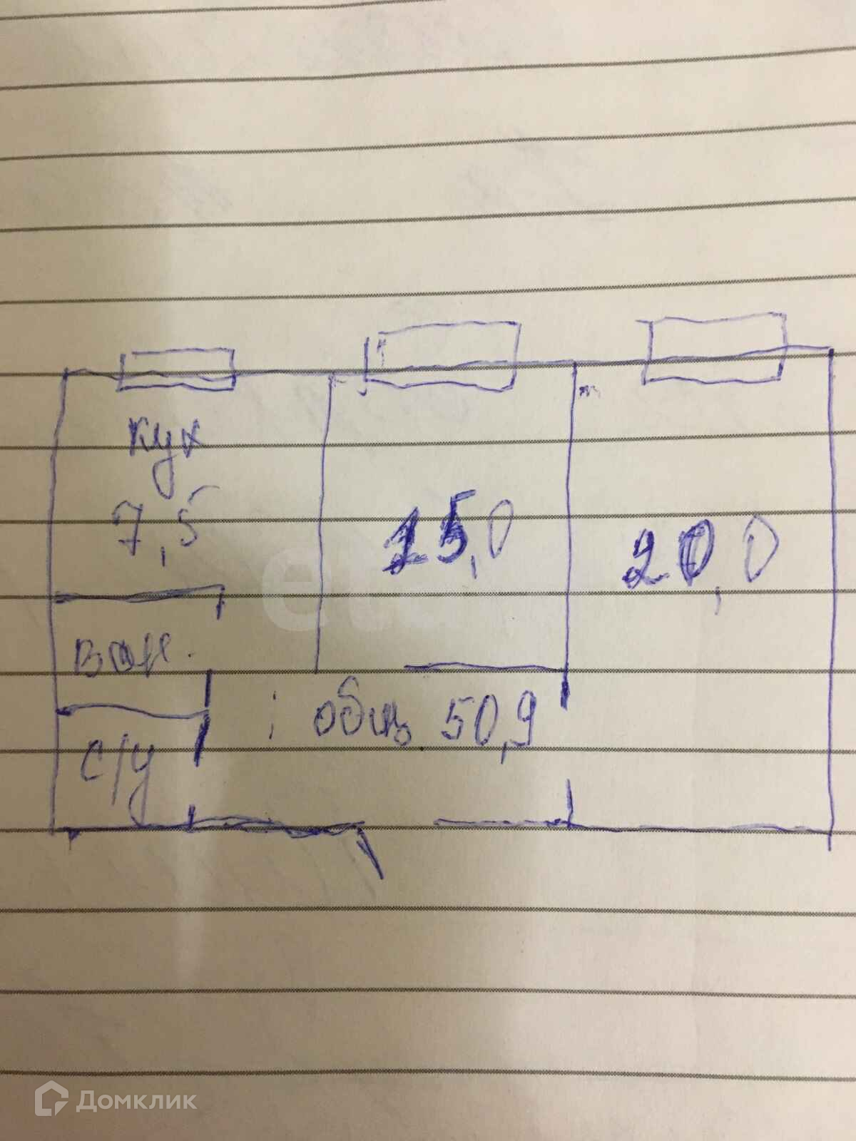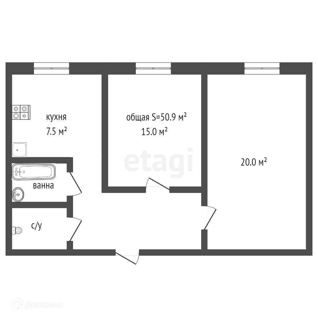 Общая площадь 50.9 м2