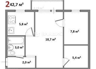 Общая площадь: 42.7 м2