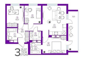 Общая площадь: 77.2 м2
