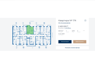 Однокомнатная квартира на продажу, 41.8 м2, Одесская улица, 7