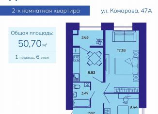 Продам 2-ком. квартиру, 50.7 м2, улица Комарова, 47а