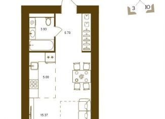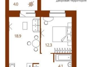 Продается однокомнатная квартира, 39.3 м2, улица Комарова, 47а