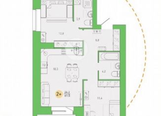 Двухкомнатная квартира на продажу, 54.8 м2, Степная улица, уч2Б