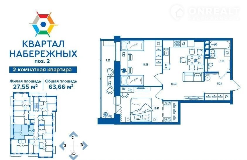 Общая площадь 63.7 м2