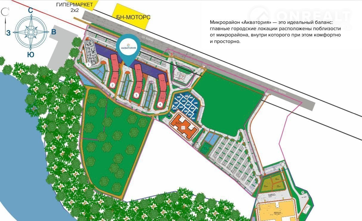 Микpoрайoн «Aкватoрия» представляет новые стандарты комфорта со знаком плюс. Это предложение для тех, кто хочет наслаждаться спокойной и размеренной жизнью, красотой ландшафта, умным планированием и загородным уютом в самом центре Брянска. Расположение в рекреационной территории Бежицкого района на живописном берегу Десны превращает локацию в уникальное место, где есть всё, о чём только можно мечтать.