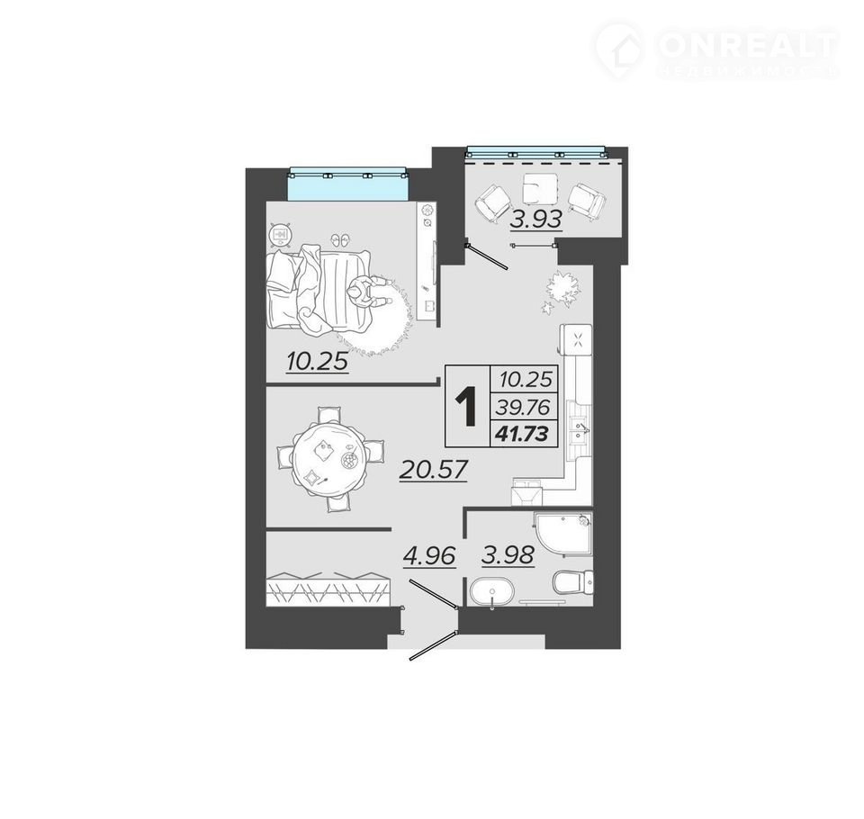 Балкон, лоджия 1 лоджия