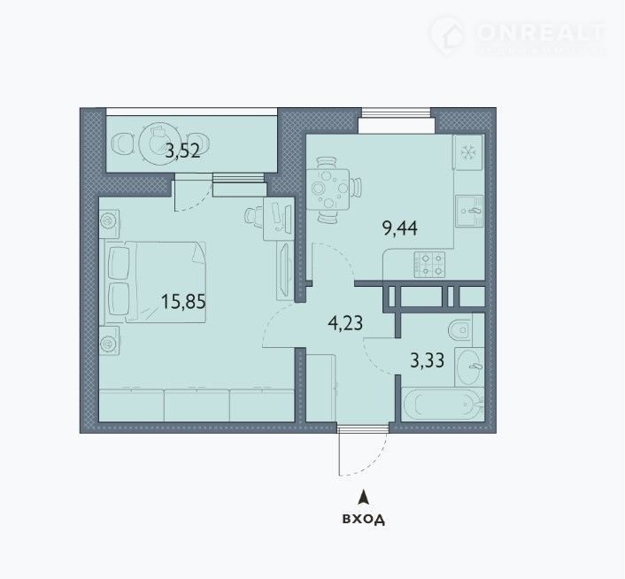 Общая площадь 34.6 м2