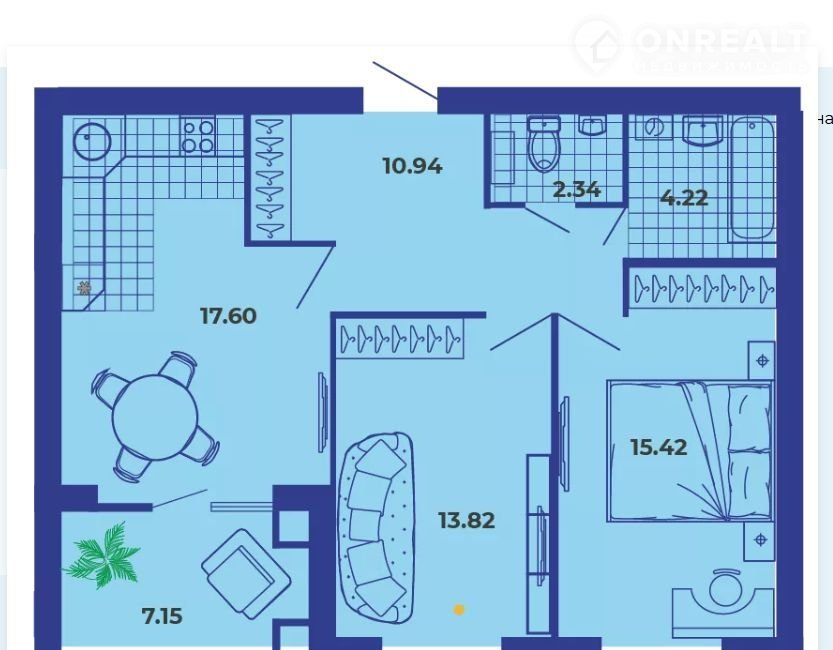 - 1 Спальня 15,42 м2