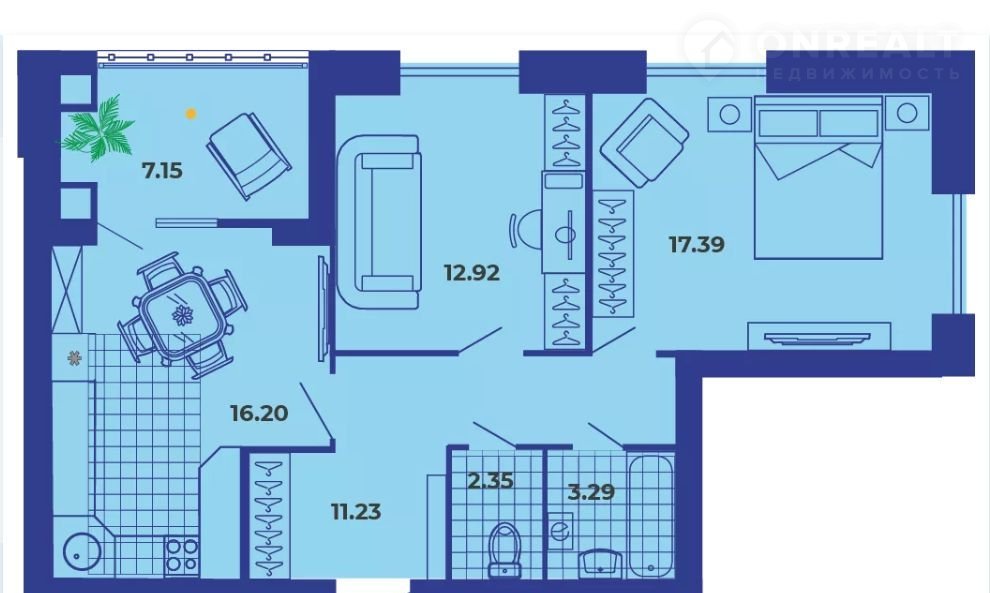 - 1 Спальня 12,92 м2