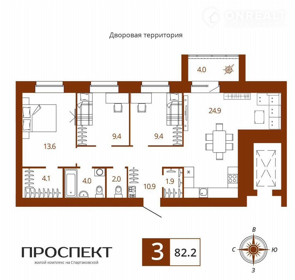 Общая площадь 82.2 м2