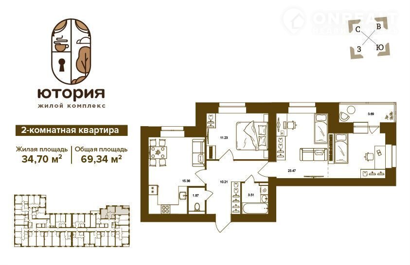 Общая площадь 69.3 м2