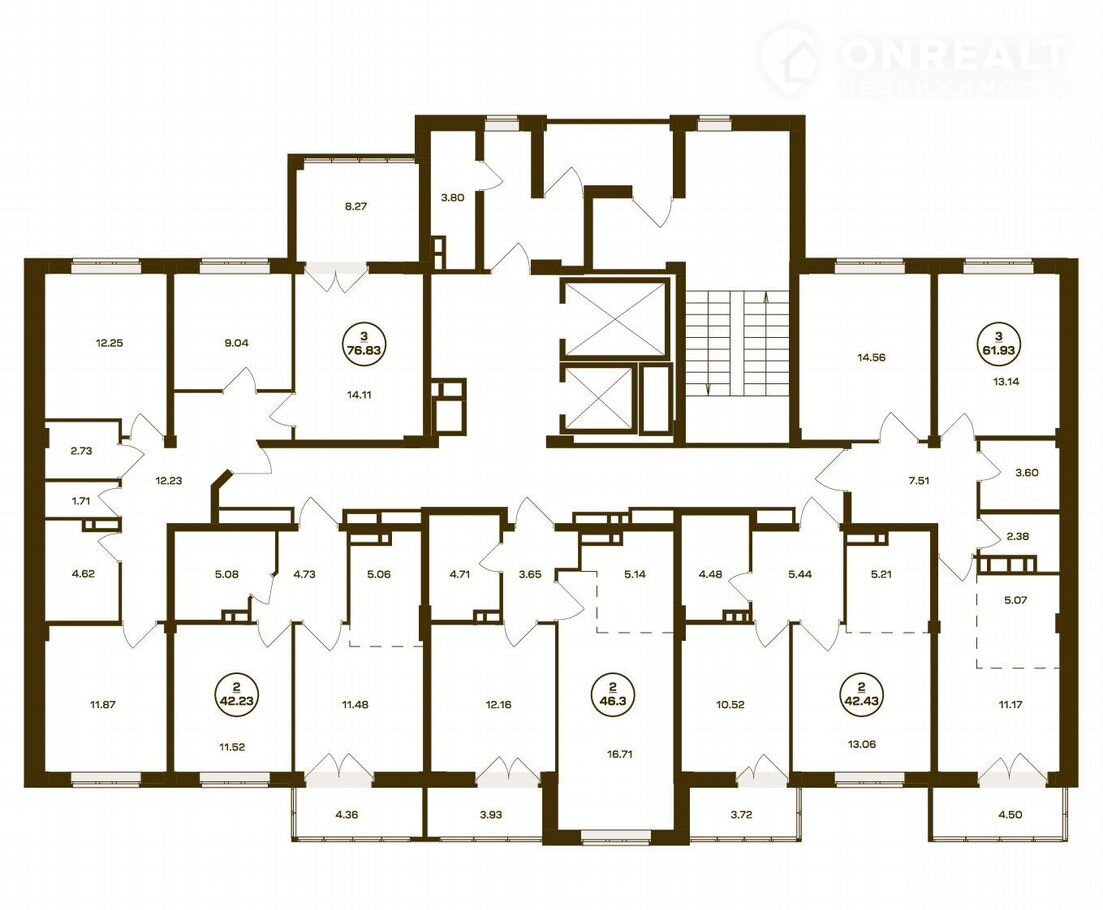 2-комнатная квартира, 46.3 м2, этаж 9 / 16, на продажу в Брянске