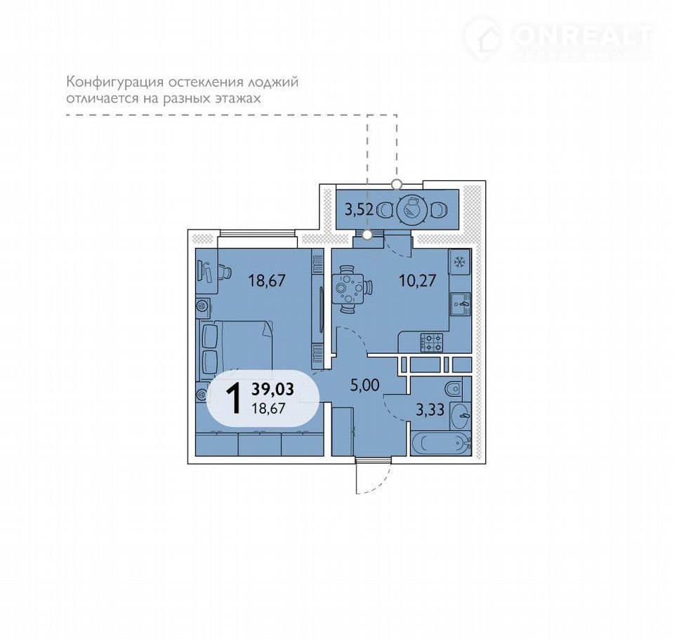 Балкон, лоджия 1 лоджия