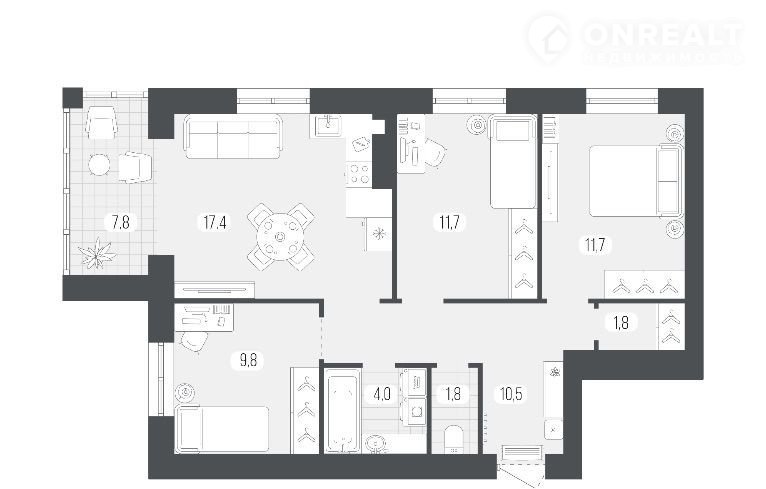 Площадь кухни 17.4 м2