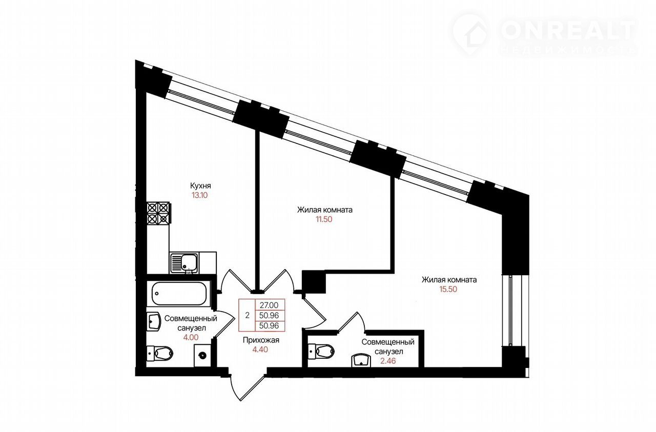 Общая площадь 51 м2
