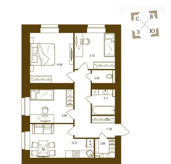 Общая площадь 66.5 м2