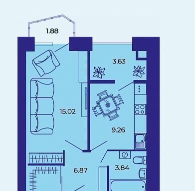 Общая площадь 39.3 м2