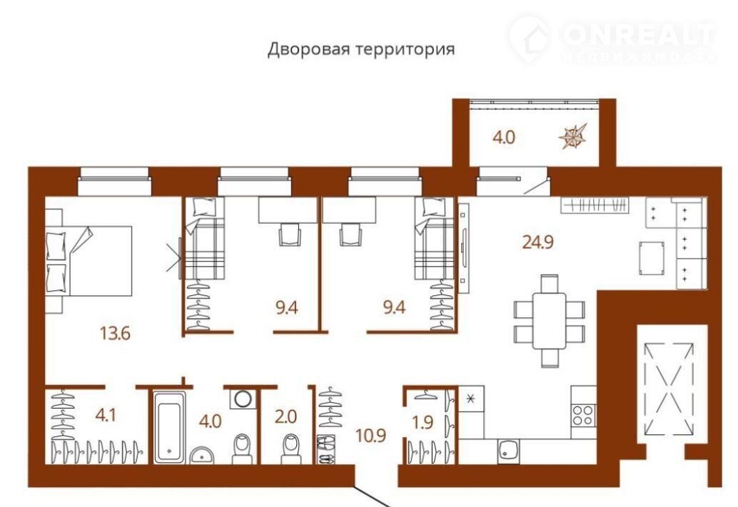Площадь кухни 24.9 м2