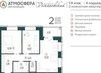 2-комнатная квартира на продажу, 56.3 м2, улица Романа Брянского, 5/1