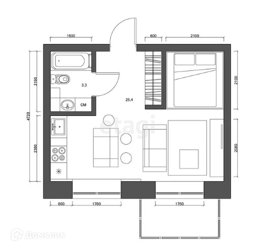 Общая площадь 32.5 м2