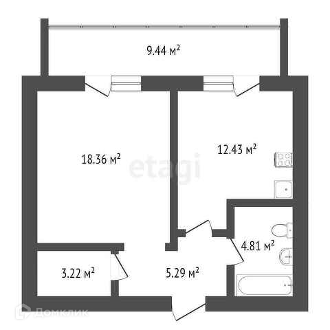 Площадь кухни 12.43 м2