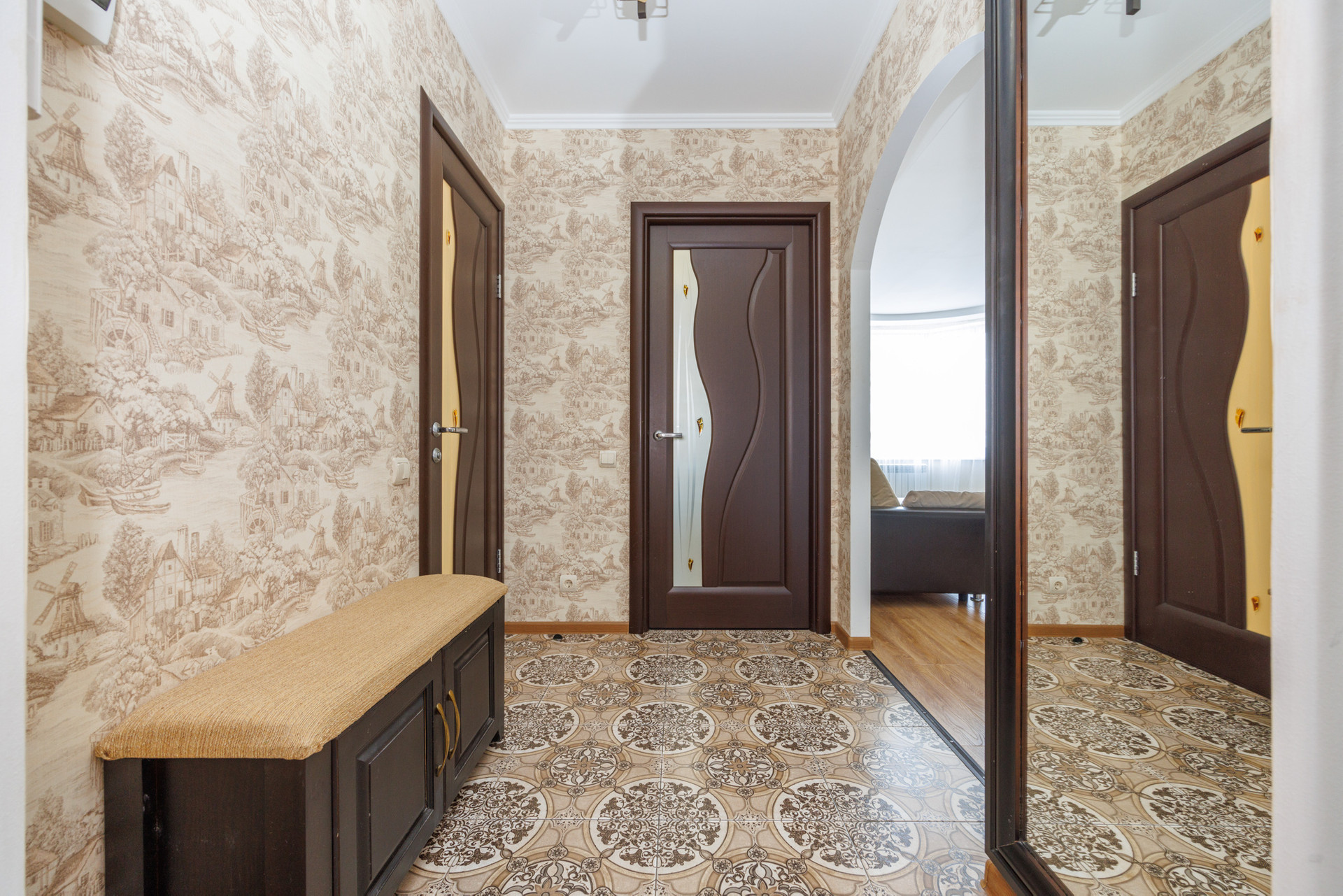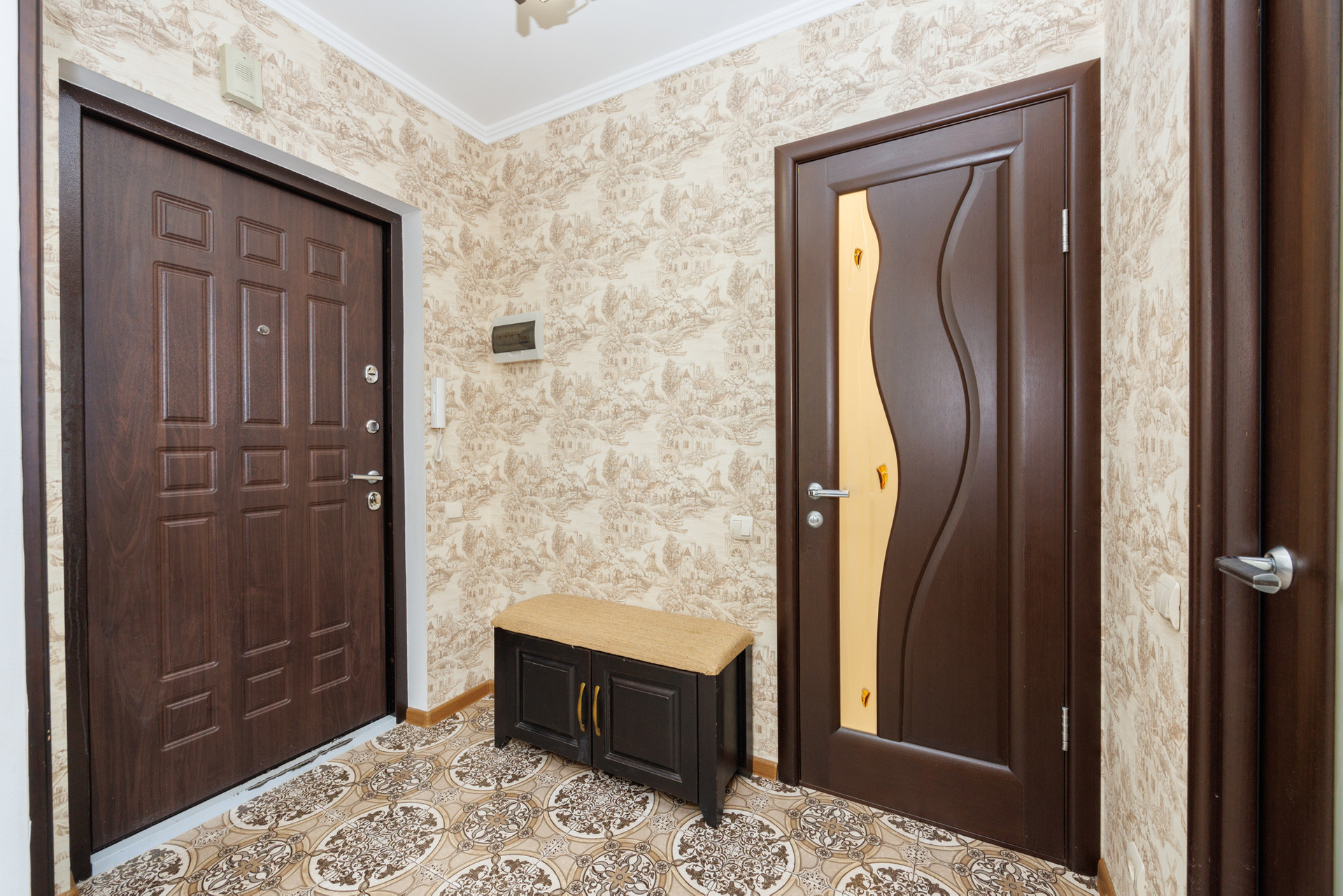 Выполнен хороший ремонт, окна ПВХ, лоджия застеклена евро, напольное покрытие – в комнате ламинат, в прихожей, кухне и санузле – плитка, потолки выровнены, отштукатурены и покрашены.