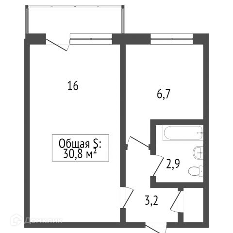 Общая площадь 30.7 м2
