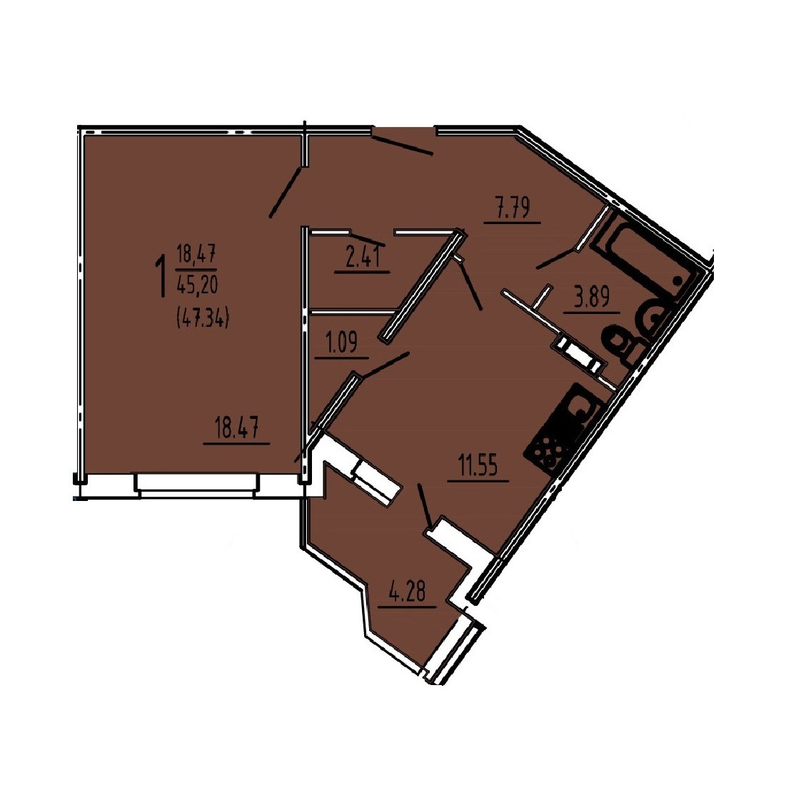 Общая площадь 47.34 м2