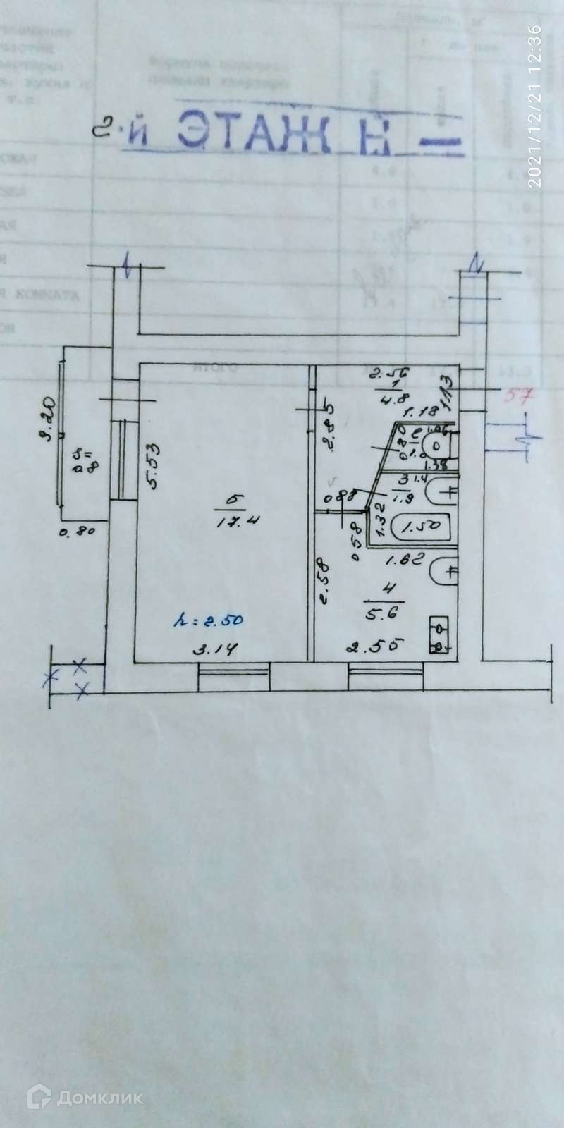 Высота потолков 2.5 м