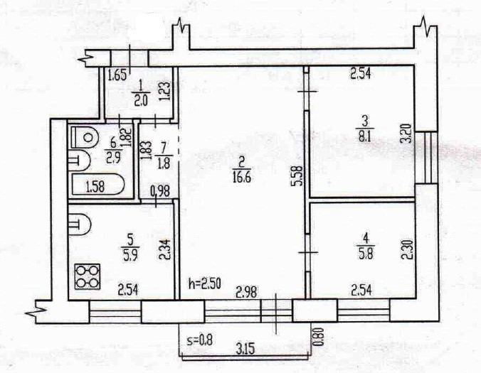 Высота потолков 2.5 м